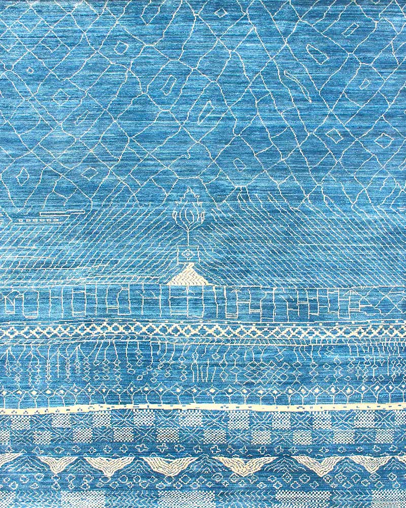 Rug Story : ‘Vista Blue Design’ is from Nouman’s abstract collection. Culminated over the years, these are designs that were originally created to suit a particular scheme, often together with the client.